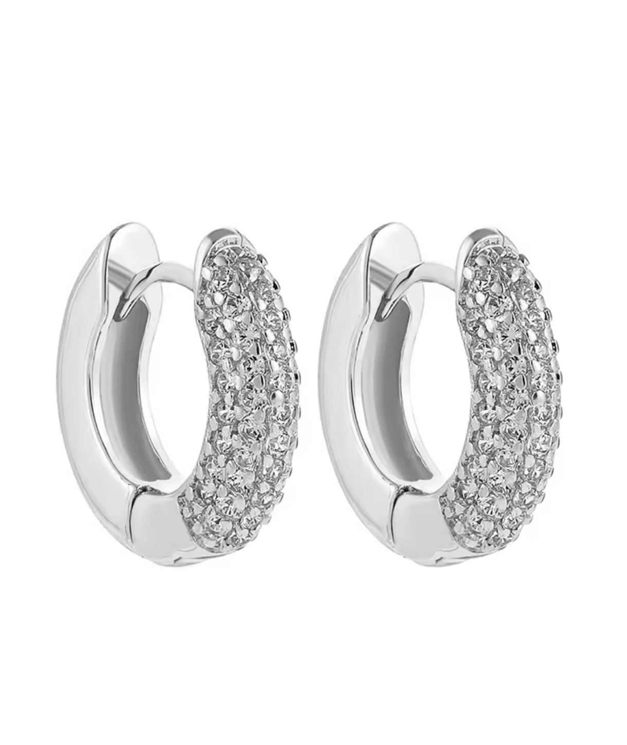 Elegant and luminous, the Astra Hoops are crafted in high-polish sterling silver and set with shimmering diamonds for a refined touch of brilliance. Their clean, modern silhouette is elevated by the subtle sparkle of pavé-set stones — a timeless design made for effortless sophistication.